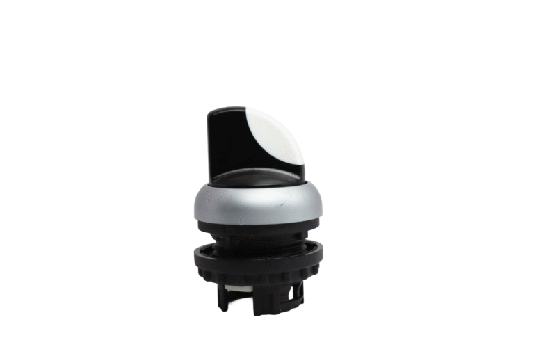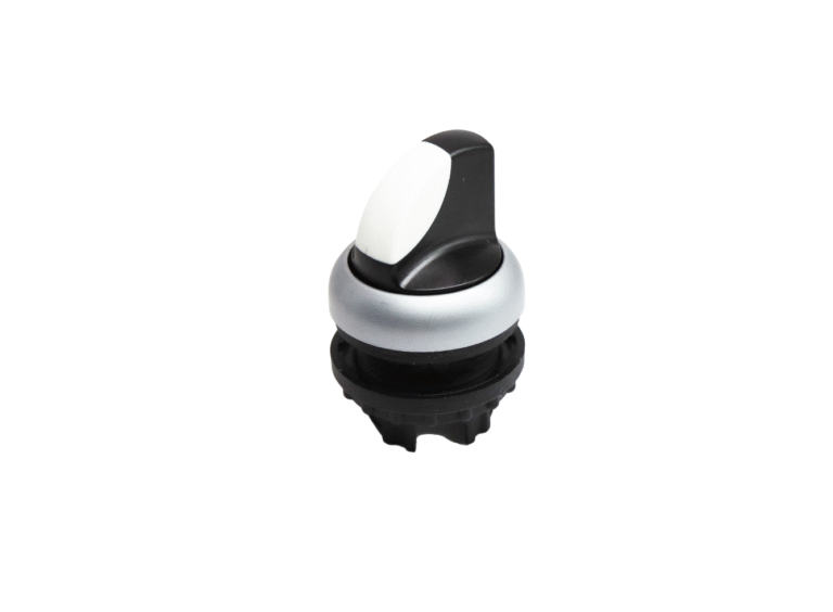 High-performance actuator selector switch engineered for industrial control systems in Virtus Equipment and ZERMA America machinery. Features durable metal construction with positive detent positions for reliable operational mode selection. Designed for demanding processing environments with excellent tactile feedback and secure position retention.