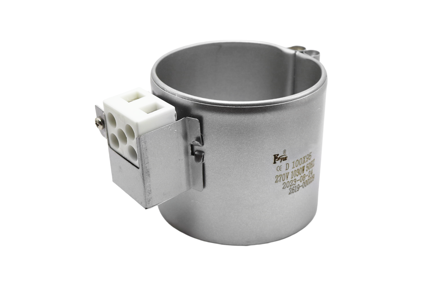 The 100 x 95 270V 1030W Aluminum Heater Band is a heavy-duty heating component designed for demanding LOG injection molding applications. This high-capacity heater band features aluminum construction that delivers exceptional thermal conductivity and uniform heat distribution. Engineered with a 100mm inner diameter and substantial 95mm height configuration, this heater band provides powerful 1030-watt heating capacity at 270 volts for superior material processing and rapid temperature recovery in high-production environments.